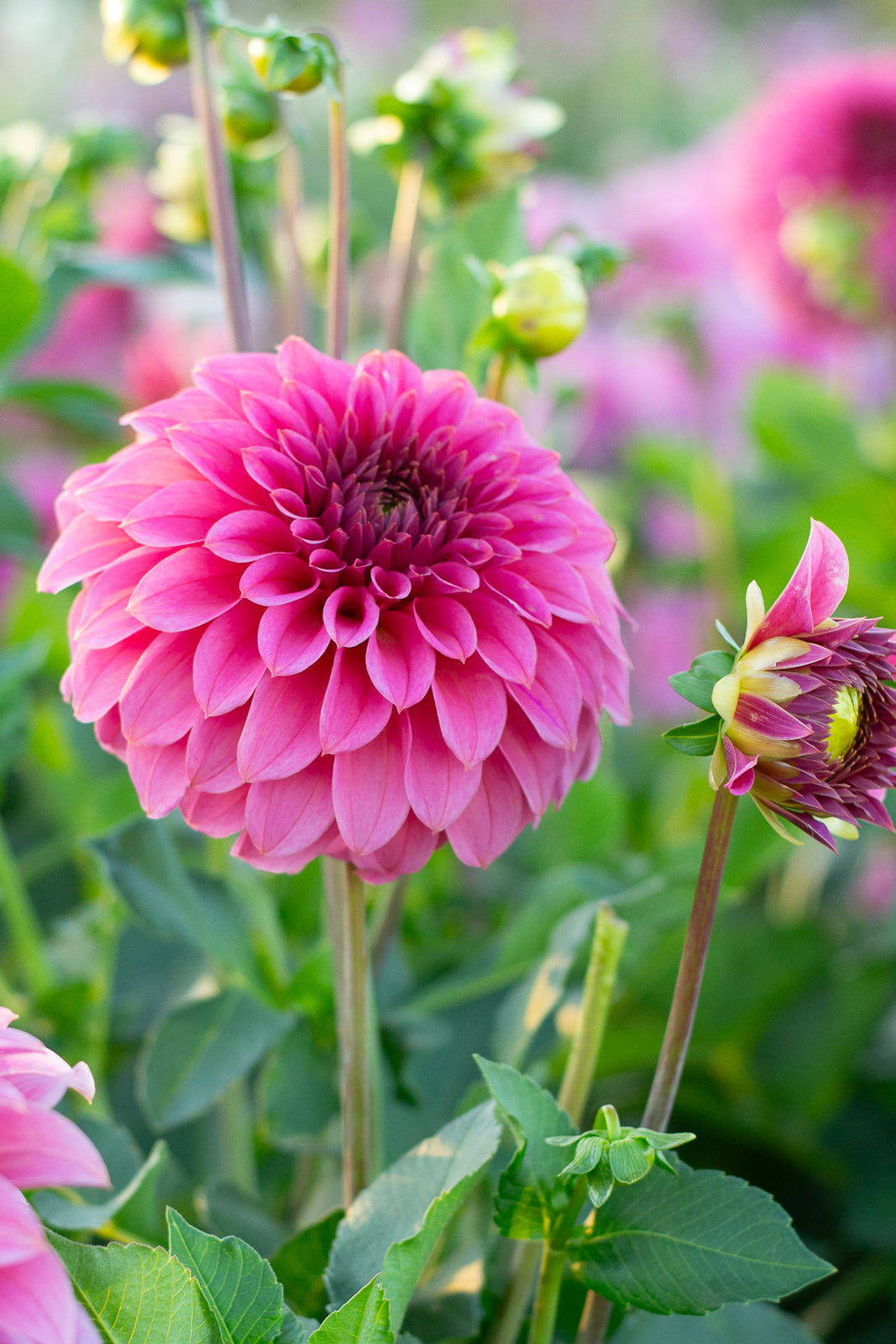 Beautiful miniature decorative in a medium pink. Long strong stems and great form. Stems are darker and harmonise nicely with the slightly darker pink in the center of the bloom. Excellent cut flower.