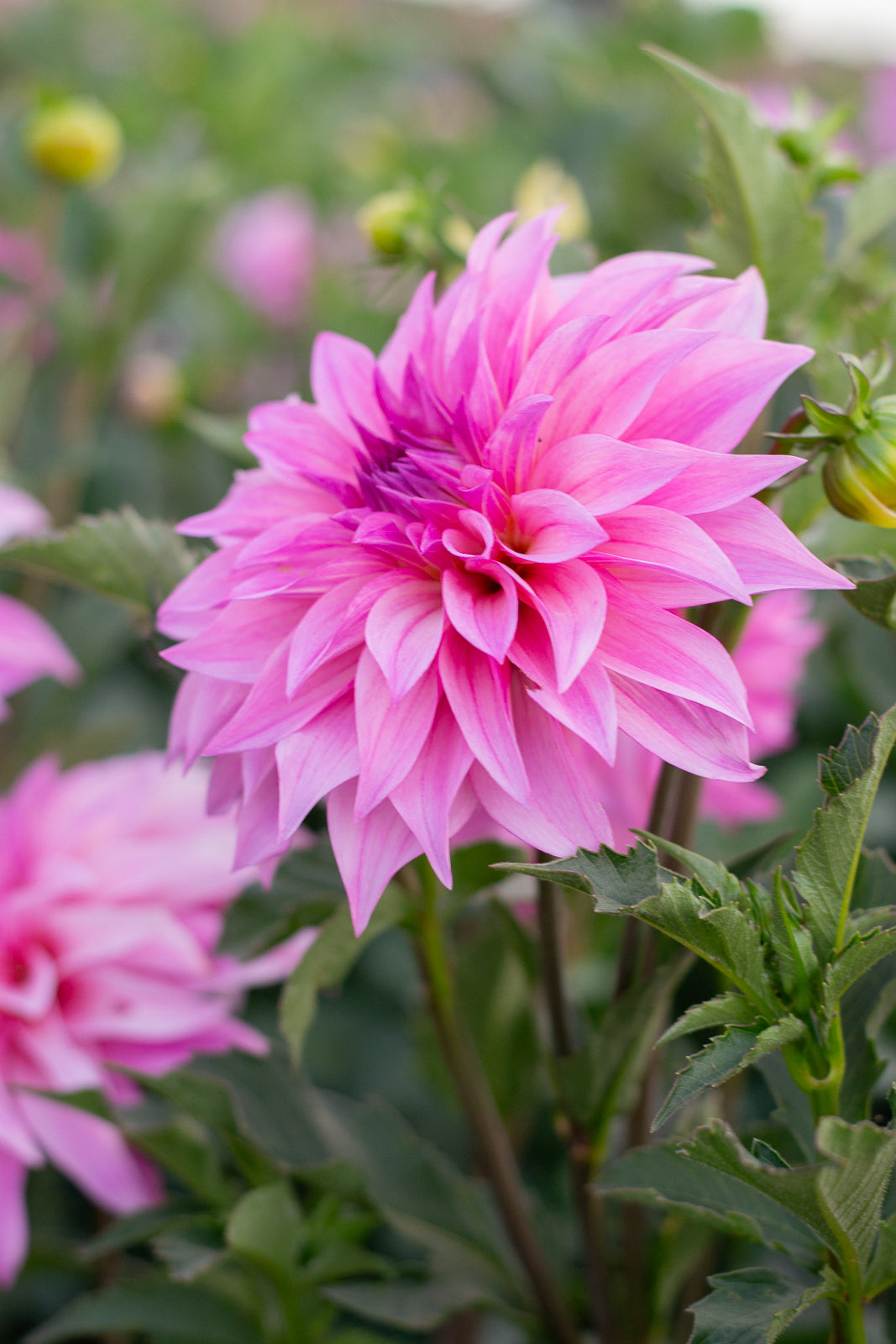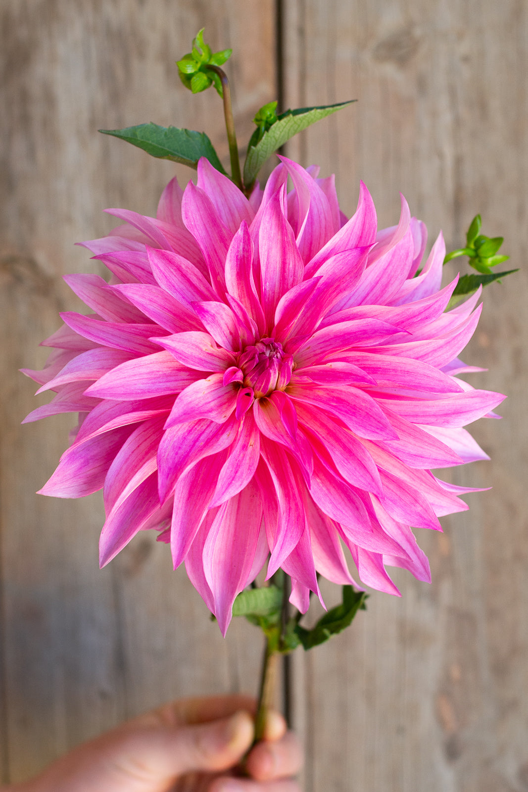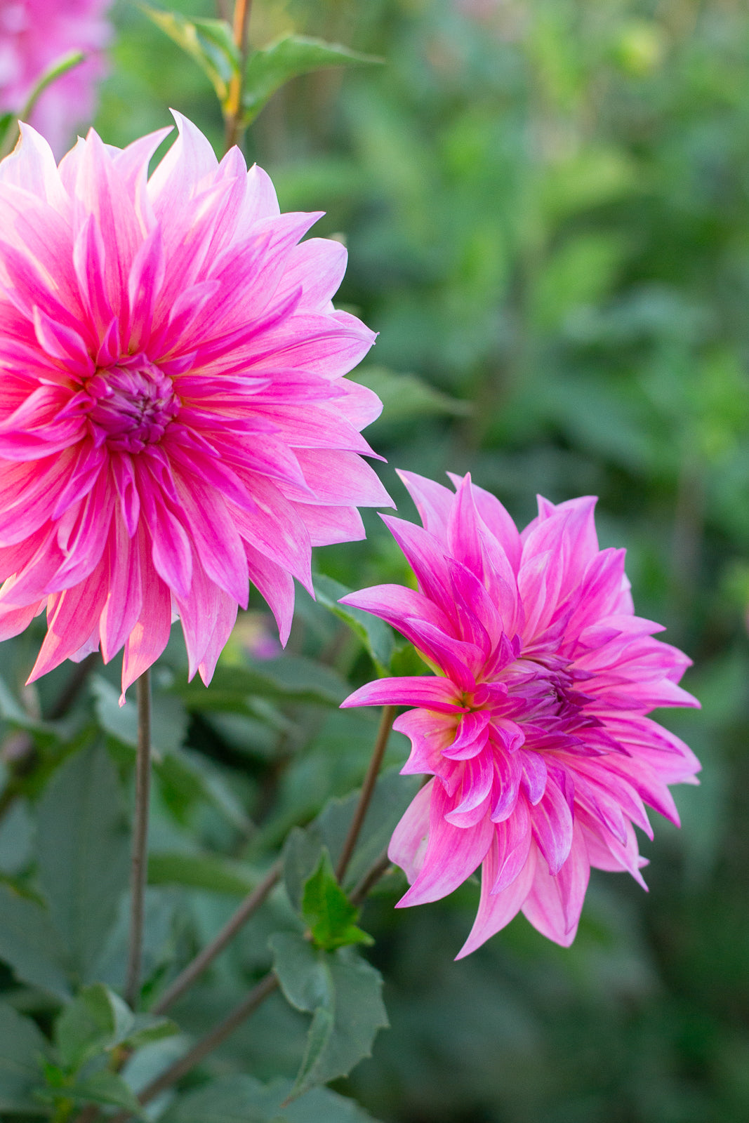 Beautiful wavy-petaled blooms are eye catching in the field and vase. One of the most complimented blooms at our farm events in 2025. The large flowers are borne on strong stems at a useful angle for floral design. The flower shape is very similar to Carlos Watermelon. The wavy petals of Florelie Meagan beautifully complement more formal dahlias in bunches and bouquets