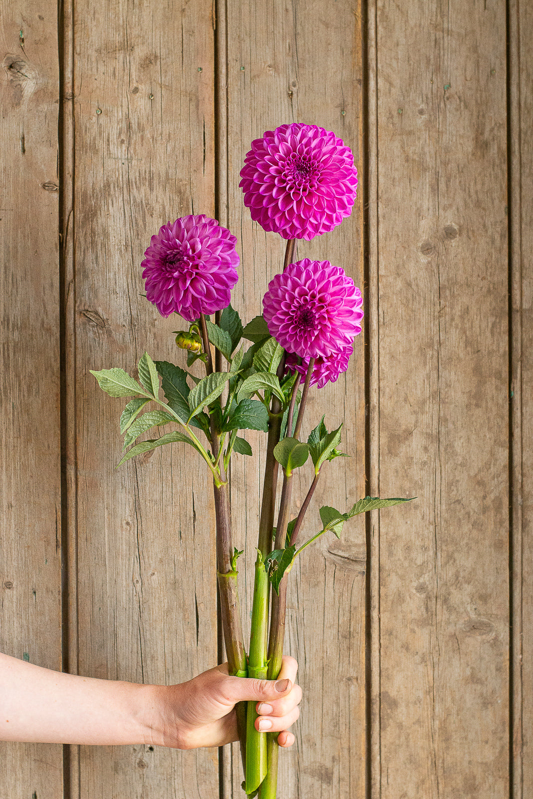 Miniature decorative. Cool purpley-pink blooms. Strong stems.