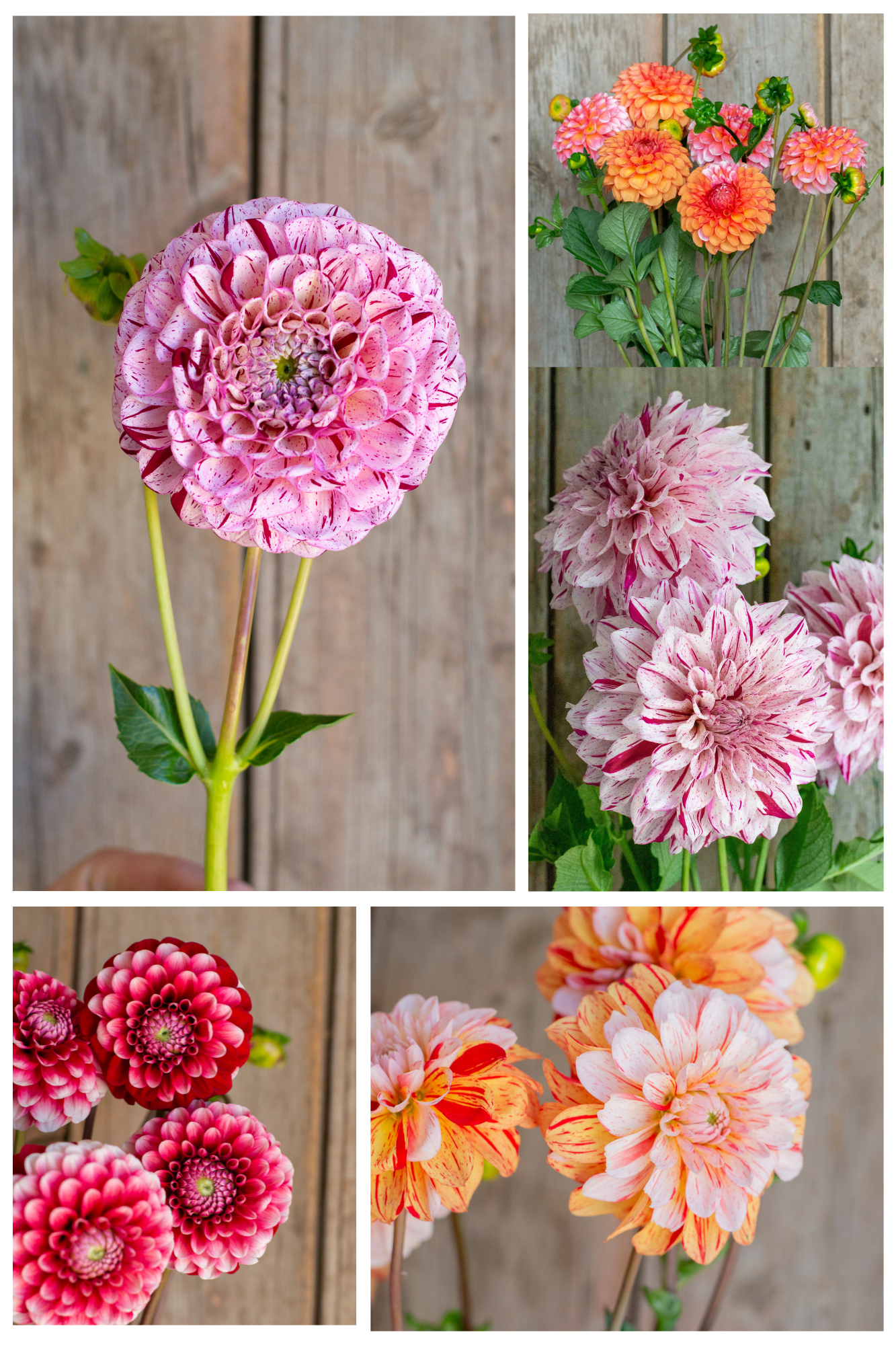 The Spots and Stripes pack includes 5 of our quirkiest and most variable dahlias: