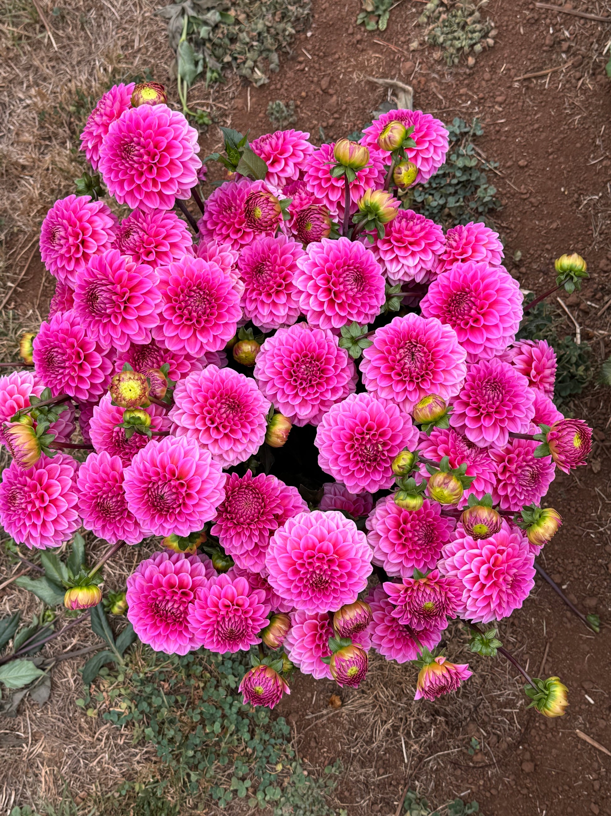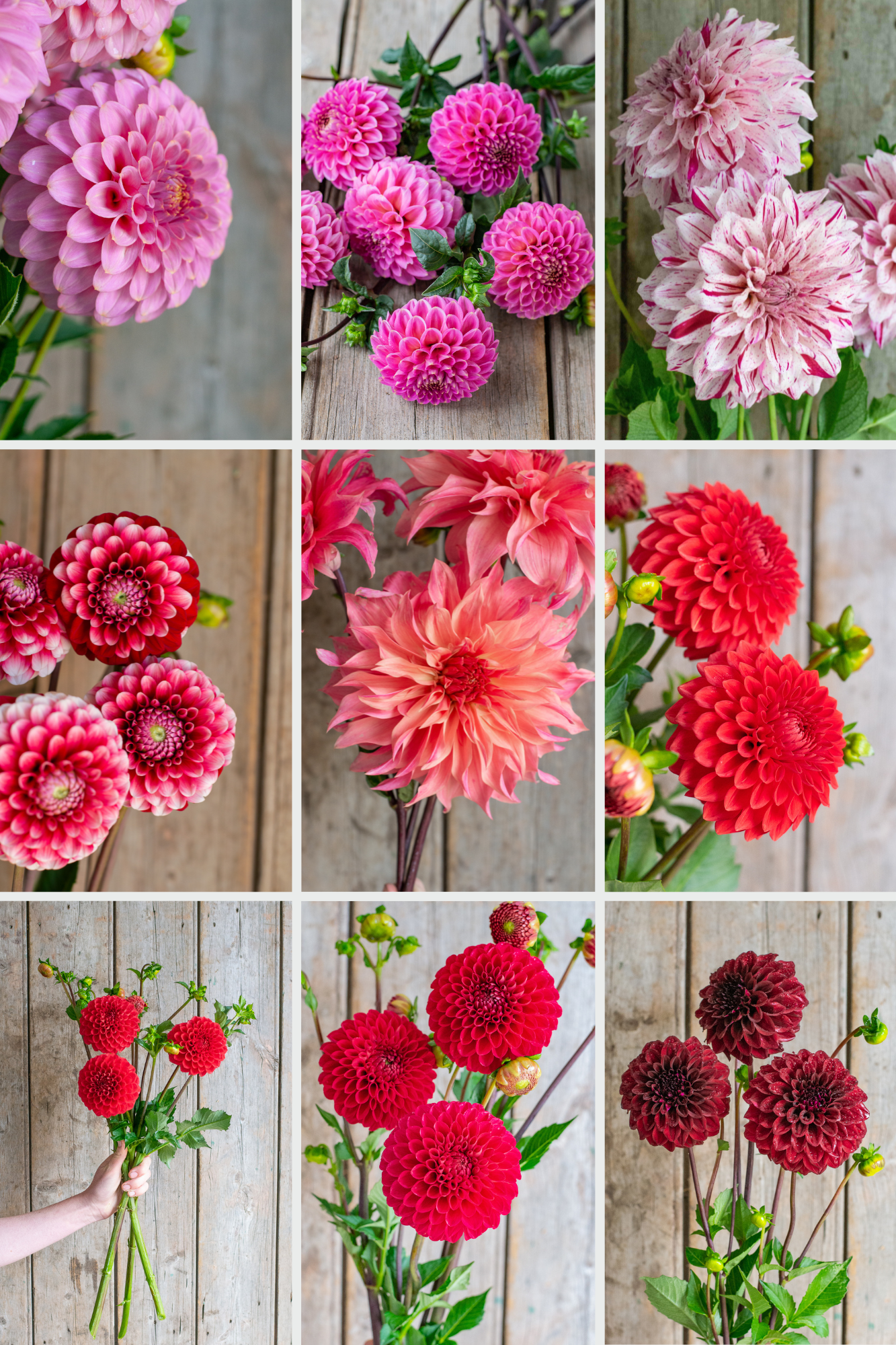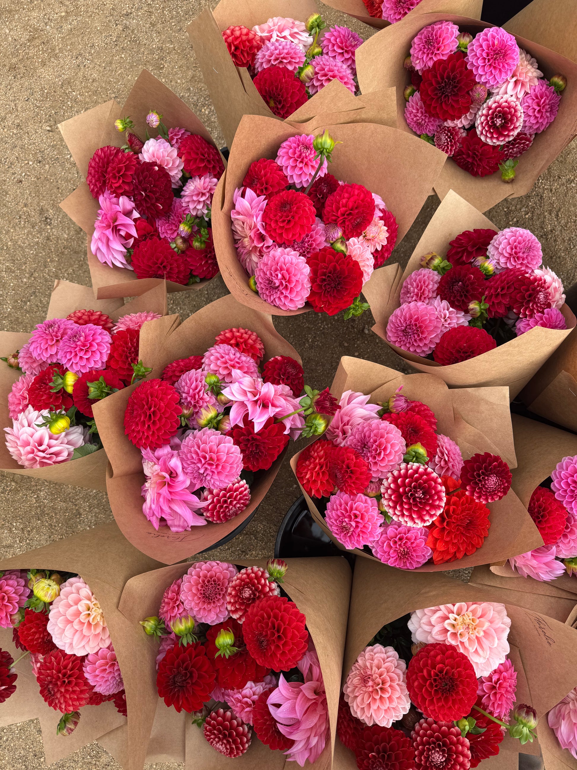 A beautiful selection of reds, pinks, burgundy and watermelons. Dahlias are the perfect locally grown flower blooming on Valentines Day - make the most of it with this romantic selection.